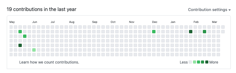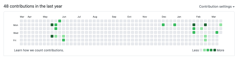 지난 1년간 19 commit에서 48 commit으로 바뀐 것을 확인했다.