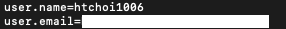 1. 터미널을 켜고 작업중인 파일의 디렉토리에서 등록된 이메일을 확인한다.
