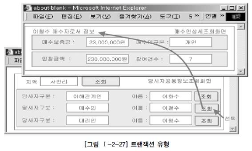 아래 그림을 보면 공통으로 처리하는 슈퍼타입 테이블인 [당사자 정보]를 미리 조회하고 원하는 내용을 클릭하면, 거기에 따라서 서브타입인 [이해관계인, 매수인, 대리인]에 관한 내용을 조회하는 형식이다. 즉 슈퍼타입이 각 서브타입에 대해 기준 역할을 하는 형식으로 사용할 때 이런 유형의 트랜잭션이 발생된다.