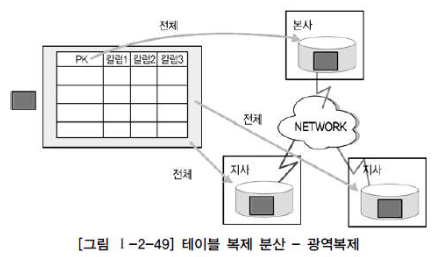 테이블 복제 분산 : 동일한 테이블을 다른 지역이나 서버에서 동시에 생성하여 관리하는 유형