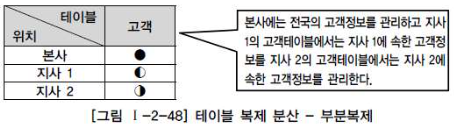 통합된 테이블을 한군데(본사)에 가지고 있으면서 각 지사별로는 지사에 해당된 row를 가지고있는 형태