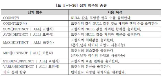 - 집계 함수의 통계 정보는 NULL 값을 가진 행을 제외하고 수행한다.