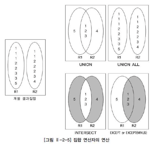 집합 연산자를 가지고 연산한 결과는 위 그림과 같다.