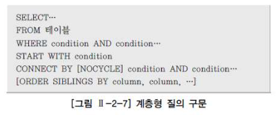 - CONNECT BY 절은 다음에 전개될 자식 데이터를 지정하는 구문이다. 자식 데이터는 CONNECT BY 절에 주어진 조건을 만족해야한다.