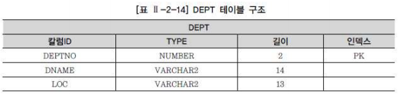 예제) SCOTT 유저가 소유하고 있는 DEPT 테이블에 새로운 부서를 등록하는 Procedure를 작성한다. SCOTT 유저가 기본적으로 소유한 DEPT 테이블의 구조는 다음과 같다.