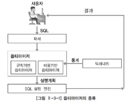 옵티마이저는 최적의 실행 방법을 결정하는 방식에 따라 아래 그림처럼 '규칙 기반 옵티마이저'와 '비용 기반 옵티마이저'로 구분할 수 있다.