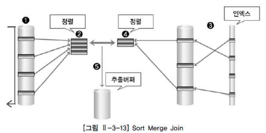 5. 정렬된 결과를 이용하여 조인을 수행하며 조인에 성공하면 추출 버퍼에 넣음